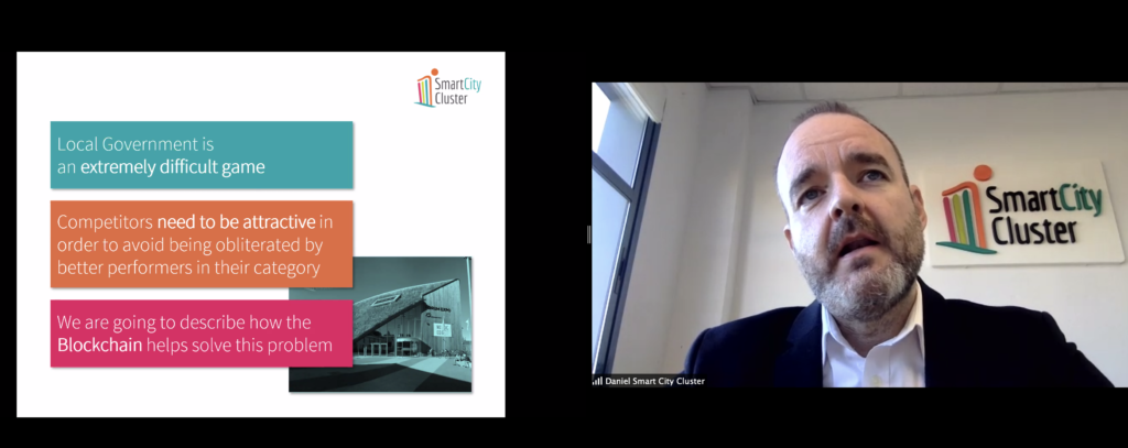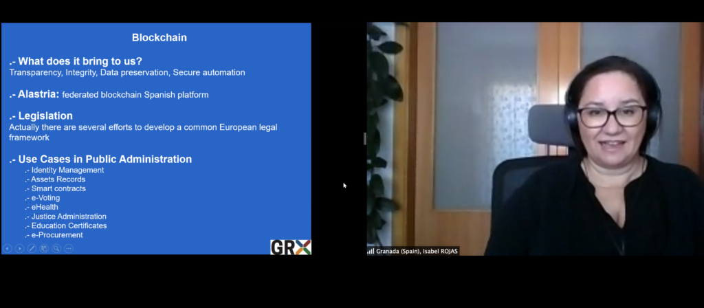 The webinar was opened with words from the Mayor of Granada City, Luis Salvador, who spoke about how blockchain innovations can be useful in creating smart cities. Mayor Salvador stated that Granada is well-known for its beauty, history and cultural heritage, and it will hopefully be soon well-known for leading the blockchain technology and cities’ applications in Europe. Further welcoming remarks were provided by Alexandra Lehmann, stating “Blockchain technology promises to revolutionise the management of smart cities…providing unique tools to coordinate & integrate different city services with transparency, efficiency and privacy.” Mrs Lehmann is part of the Foreign Policy Instruments (FPI) team at the EU Delegation to China and manages the programme implemented by the IUC. Vito Episcopo, Secretary-General, OnTech Granada Digital Innovation Hub Cluster then revealed the support they give for blockchain innovations in Andalusia, Spain.