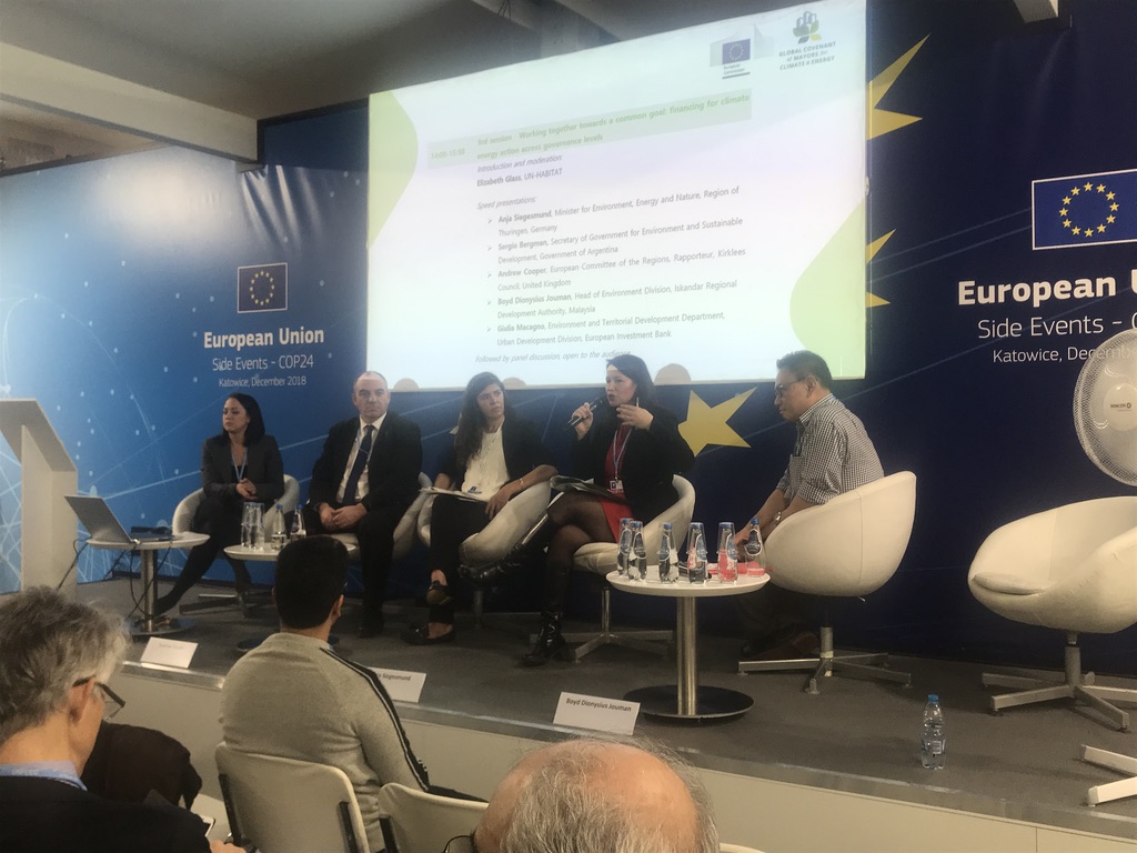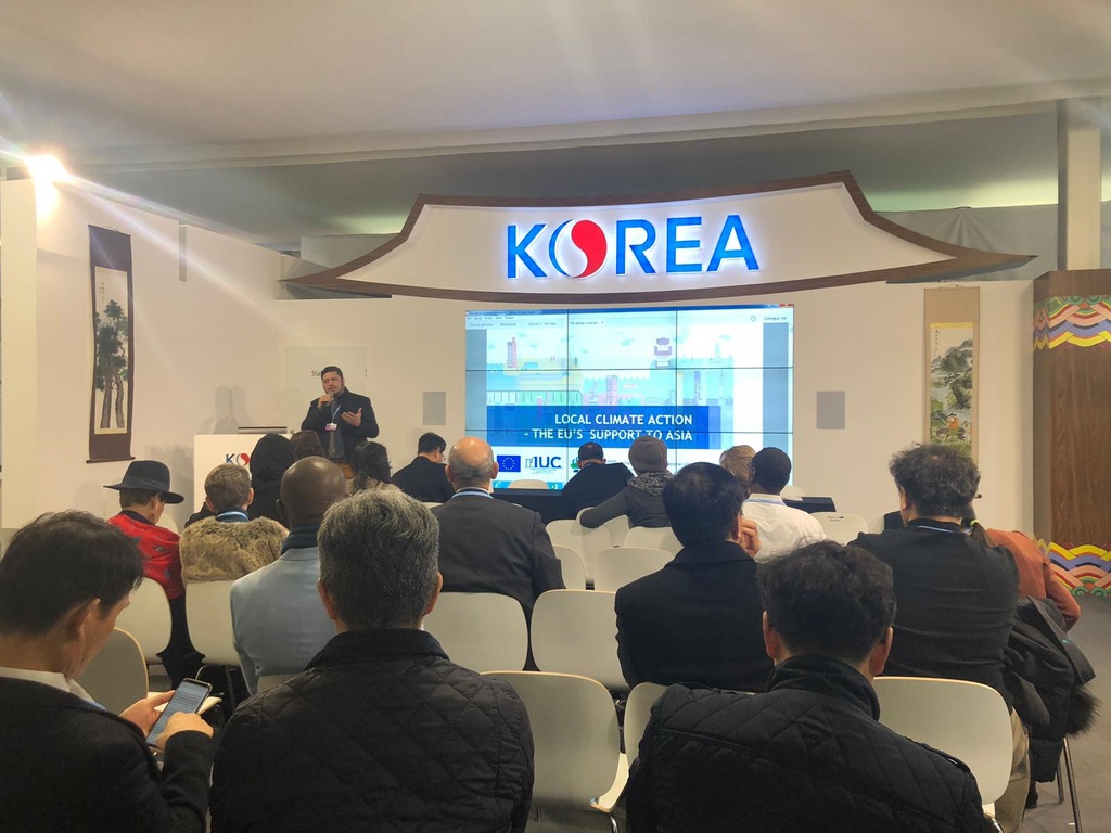 The IUC Asia team participated in two events within the COP24 held in Katowice, Poland. On the one hand side, the team leader Pablo Gándara participated in a panel discussion upon invitation of the Korean Ministry of Environment (MoE) with experts from Korea, Indonesia and the United Nations held at the Korean pavilion.  Mr Gándara delivered a speech on EU’s support to the implementation of the Global Covenant of Mayors (GCoM) in Asia through the IUC project. In the Chinese stand, he also joined the launching of the comparative study between on low carbon cities elaborated by China, Korea and Japan within the trilateral Join Research Programme.