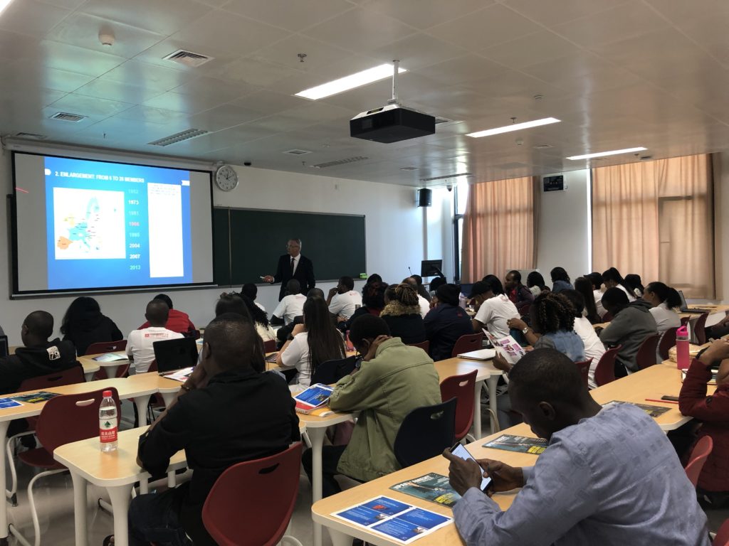 In the afternoon, Mr. Van Nistelrooij delivered a guest lecture on Urbanization and Regional Policy to international graduate students from the Belt and Road School, Beijing Normal University. There was a discussion after the lecture, focusing on the European policy, during which the international students proposed a variety of questions regarding their home countries’ relationship with the Europe and thoughts on how to strengthen the multi-level governance in both Europe and globally.
