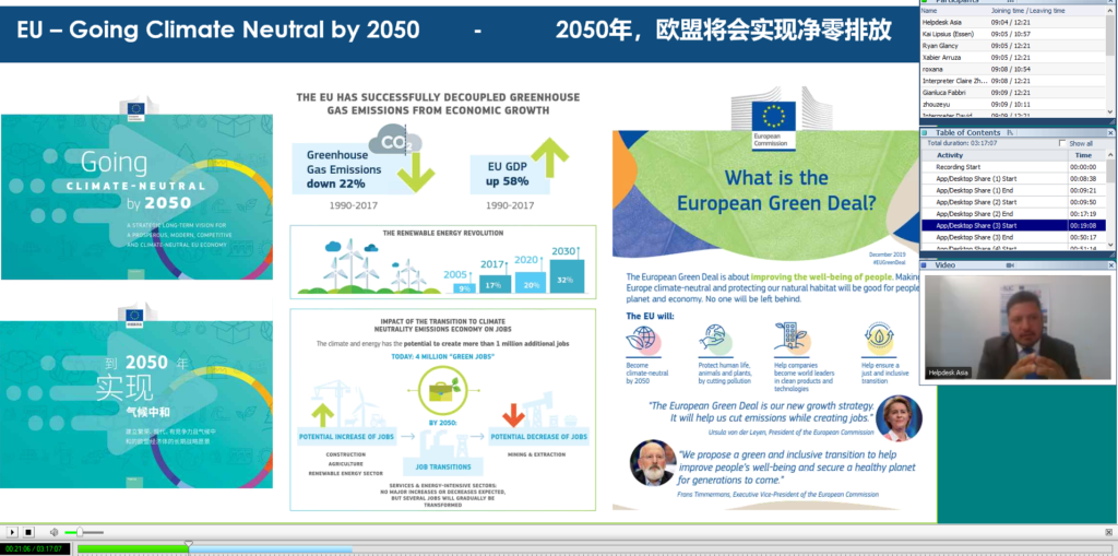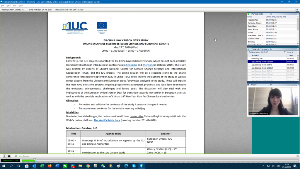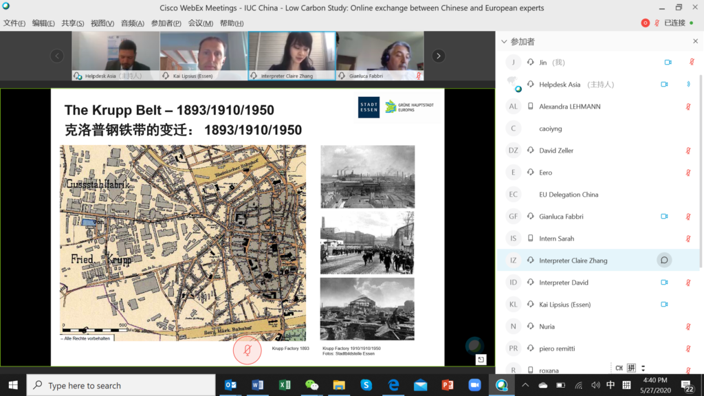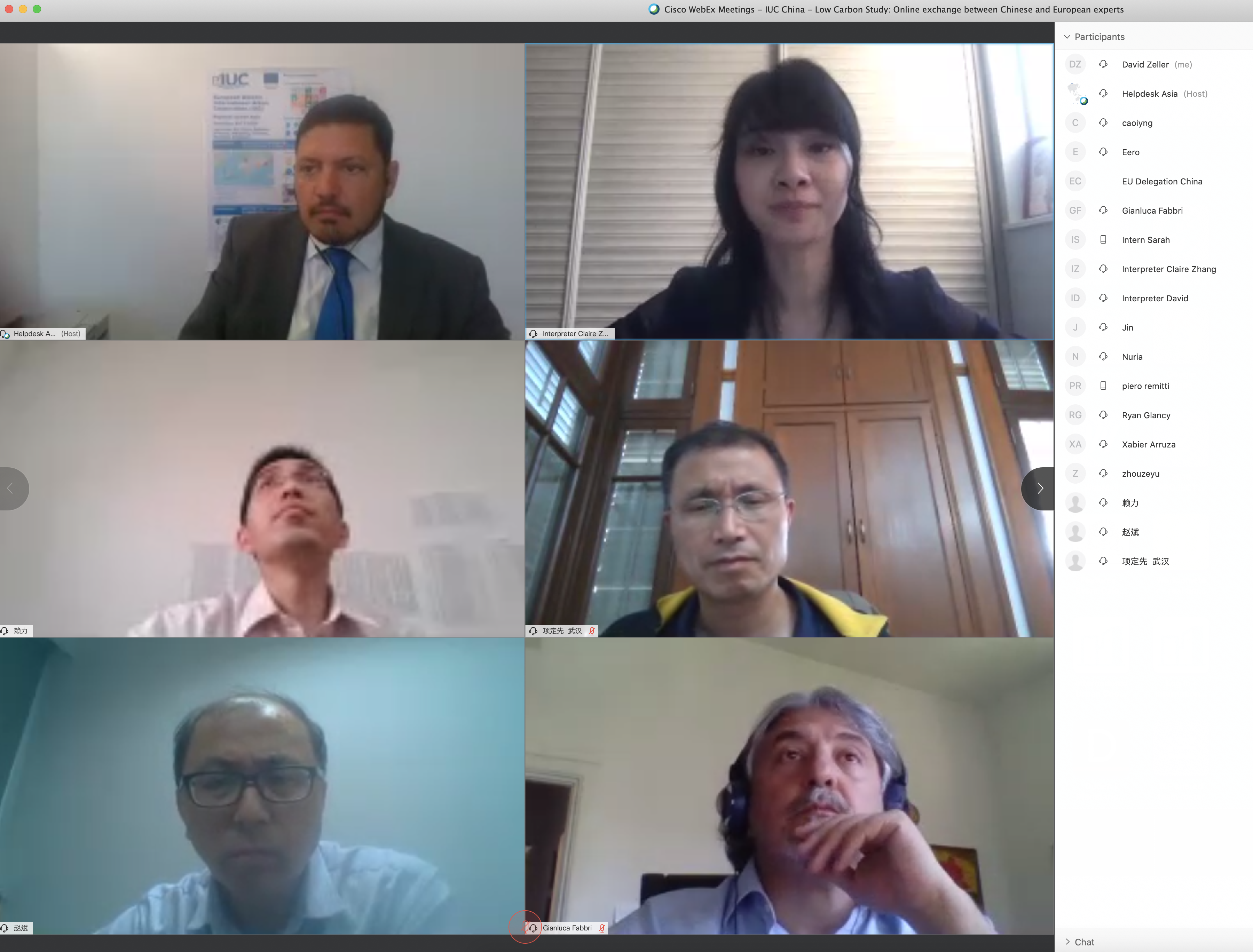 The IUC-Asia programme held an online session today to present its progress on the ongoing EU-China Low Carbon City Study, along with case studies of several cities. On the call were senior experts from both China and Europe. The study is being jointly drafted by the IUC-Asia project and experts of China’s National Center for Climate Change Strategy and International Cooperation (NCSC). Today’s online session was a stepping stone to the onsite conference foreseen for September 2020 in China (TBC).