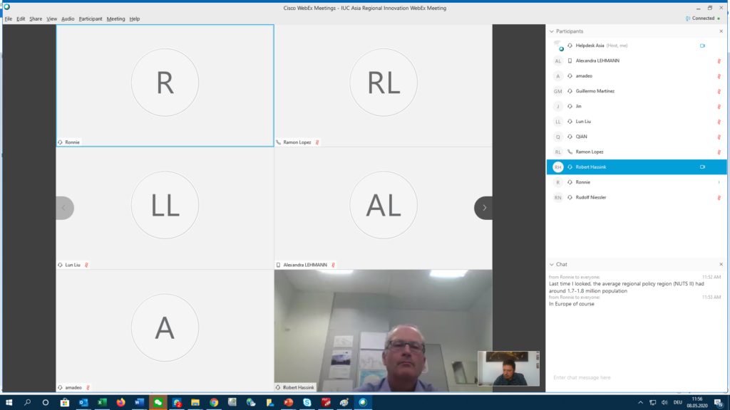 The online meeting included the participation of Rudolf Niessler, Ramón López and Ronald Hall from the EU’s DG REGIO as well as Alexandra Lehmann from the EU’s Foreign Policy Instrument (FPI) in China. EU experts referred to regional innovation as living systems with soft coordination elements at the core. They referred to empirical evidence of success/shortcomings of the EU smart specialisation approach analysed in evaluation studies. They also discussed the implications of the upcoming interregional innovation investment fund and of China’s 14th Five Year Plan for the regional innovation. EU experts also mentioned the importance of involving the EU’s Joint Research Centre in the analysis as well as DG REGIO’s geographic units for the case studies.