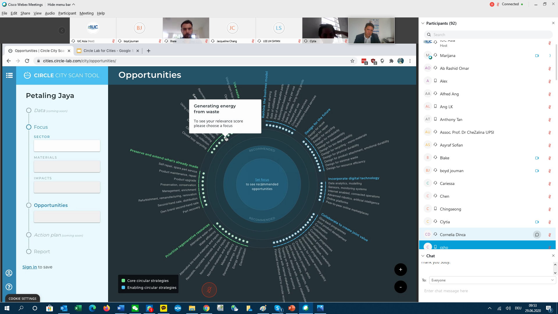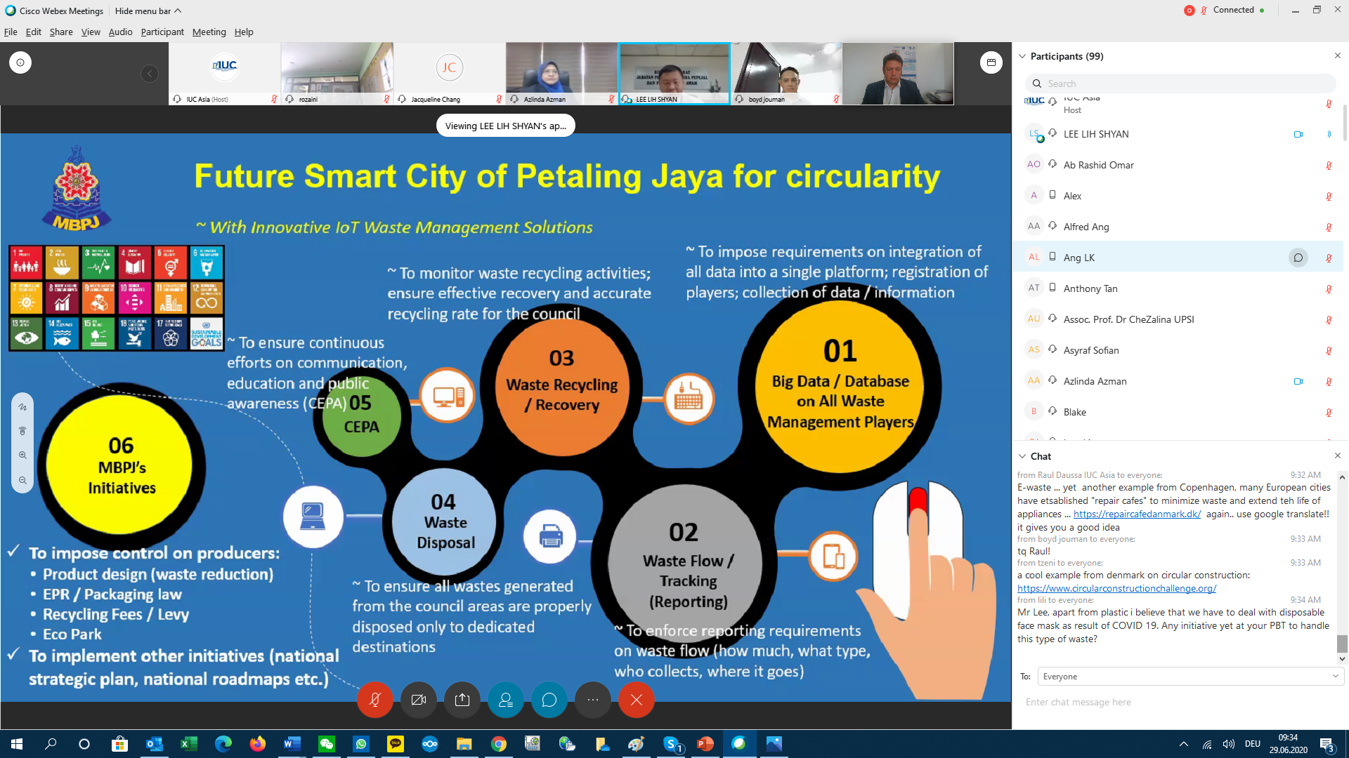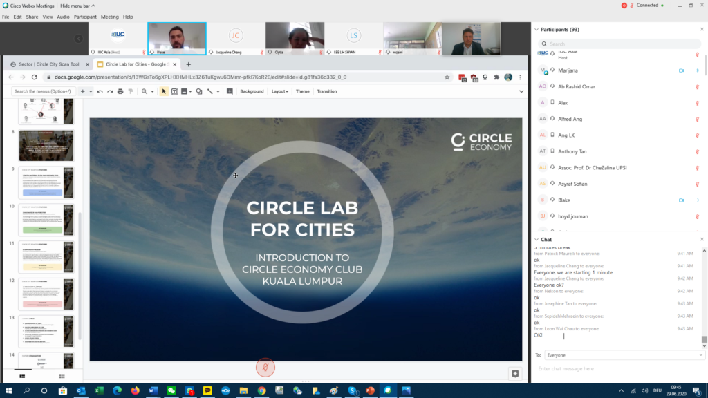 Over 100 experts from Malaysia and Europe have joined today’s stakeholder consultation webinar on circular economy in the city of Petaling Jaya. The event was opened by the Deputy Mayor, Ms. Azlinda Azman and included presentations by experts from Malaysia (Petaling Jaya City Council, Iskandar Regional Authority) and Europe (Sapienza University of Rome, Amsterdam Smart City, the Circular Economy Club, Cities at Circular Economy and the IUC Asia team). This stakeholder consultation webinar enabled representatives from the government, private sector, research and civil society to dialogue with experts from European cities and organisations on the subject matter. Participants were also exploring how city-to-city cooperation with European pairs will support the transition of Petaling Jaya to a circular city. The meeting was moderated by Ms. Jacqueline Chang, Circular Economy Consultant, IUC Asia.