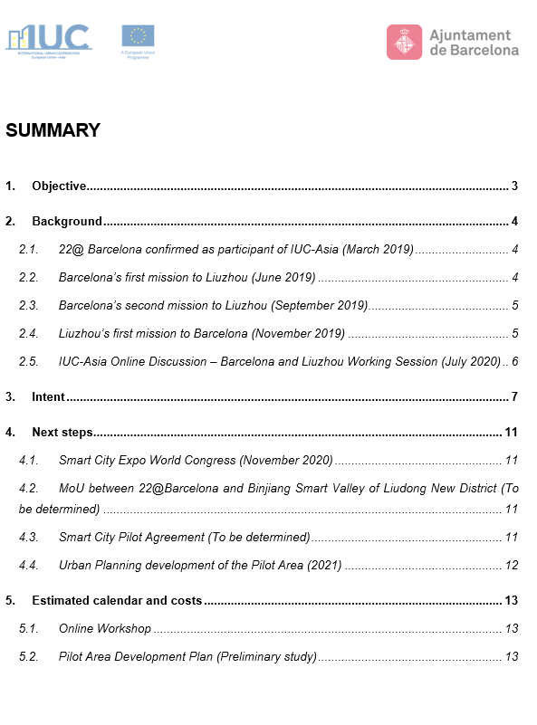 The City of Barcelona has submitted the Urban Cooperative Action Plan (UCAP) for the activities with Liuzhou (Guangxi Province). The plan reflects the upodated priorities and counterparts in Liuzhou, including the Binjiang Smart Valley of Liudong New District. Barcelona proposes to enhance an exchange of know-how by developing comparable study cases and, for this purpose, offers the possibility of also establishing a pilot area in 22@Barcelona district. The document lists the actions carried out between Liuzhou and Barcelona until now and sets out the City of Barcelona’s Action Plan proposal for future cooperation. It includes the main institutions involved in Barcelona, namely the Municipal Urban Planning Institute (IMU), renowned urban planners from the Polytechnic University of Catalonia (Barcelona School of Architecture – ETSAB) and GINA Barcelona architects. Back in 2019, Barcelona and Liuzhou have signed two agreements to cooperate on the development of pilot areas in Liuzhou’s Northern Ecological New District’s and Liudong New District. The UCAP is available upon request.