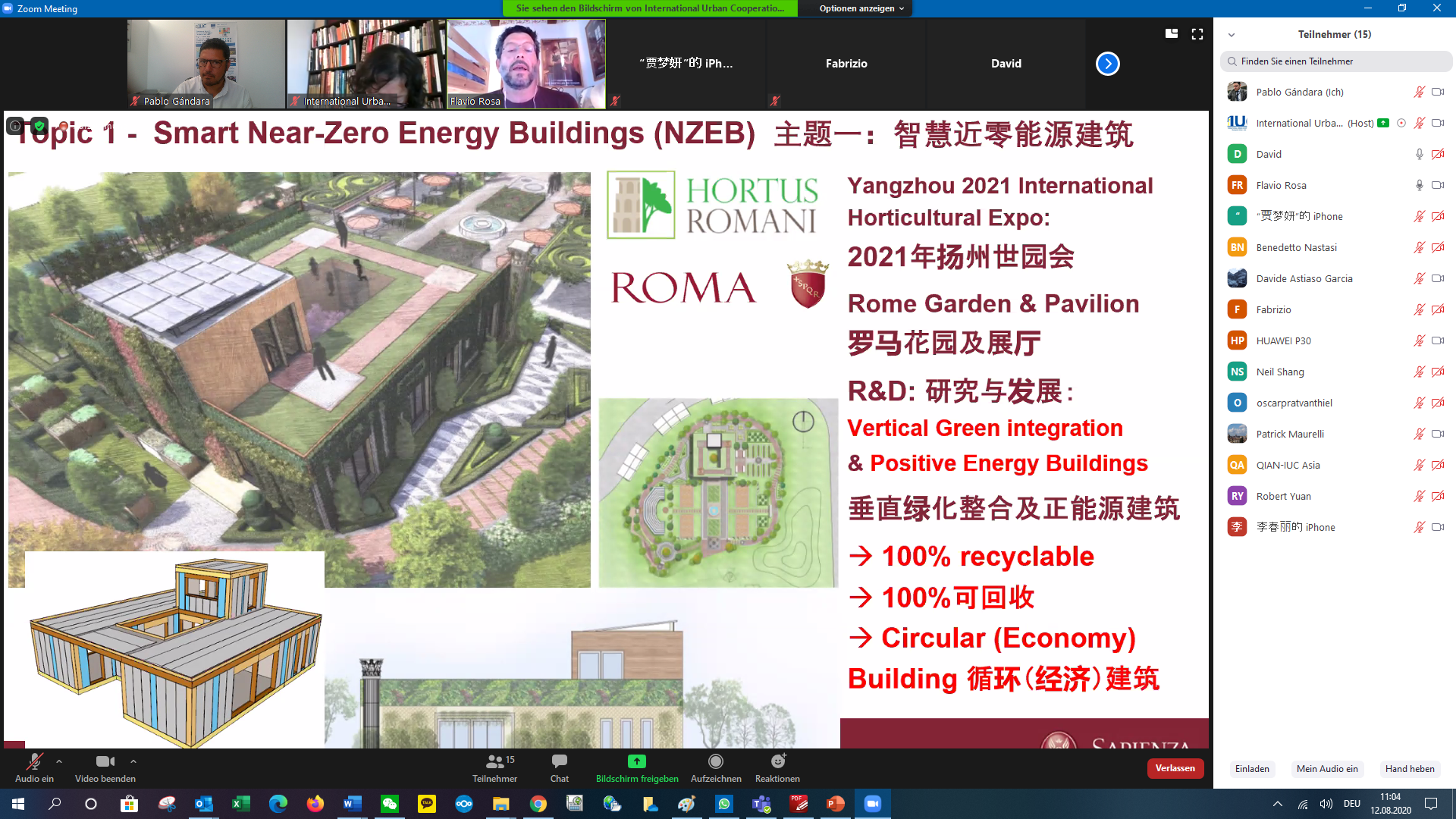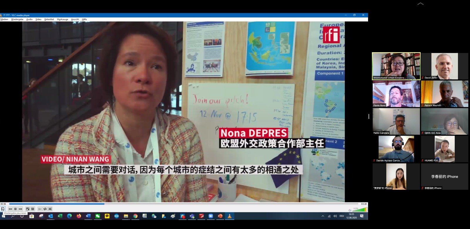 The meeting was opened by the IUC team leader Pablo Gándara, who introduced to the Chinese experts few pilot projects between EU and Chinese cities. He also showed a video interview with Nona Depres from EU’s FPI  explaining the city-to-city cooperation at the Paris Peace Forum 2019 (see below picture). Professor Fabrizio Cumo introduced Sapienza’s CITERA, which includes 6 departments of 3 faculties jointly developing applied research in cooperation with industry partners and with EU support. Sapienza’s team introduced the following 5 cooperation areas: