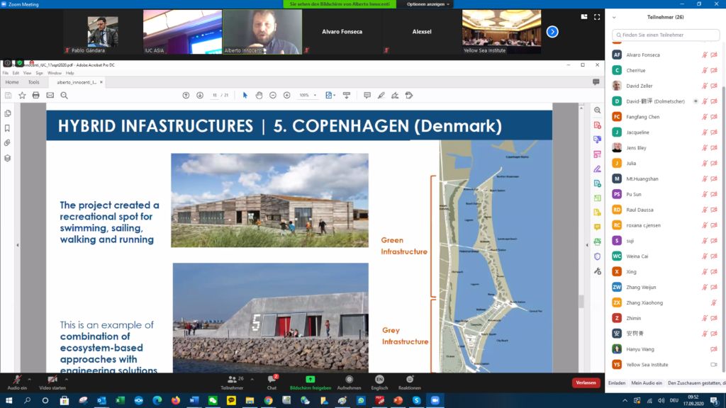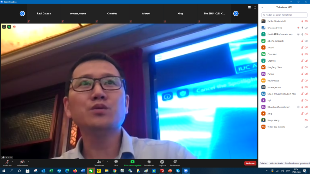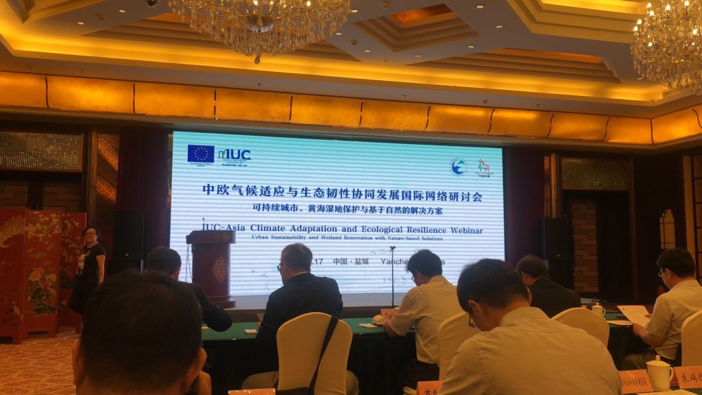 In cooperation with the Chinese Academy of Social Sciences (CASS), the IUC team organised an onsite and online workshop for 50 Chinese practitioners from Yancheng City (Jiangsu Province). The event was a follow-up to the online discussion between Chinese and European Experts organised on 28 May 2020. Over 30 participants joined the meeting via live streaming. Experts from China and Europe have exchanged policy views and best practices on resilience and adaptation to climate change, with a focus on green infrastructure and sponge city solutions. The event was opened by Mr. Octavian Stamate, Climate and Energy Counsellor of the EU Delegation to China as well as by Mr. Wei JIANG, Deputy Mayor of Yancheng. For further details, please contact Ms. Jin Jingnan at jj@staging.iuc-asia.focal-learning.com.