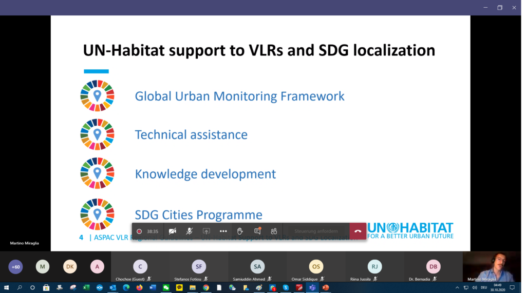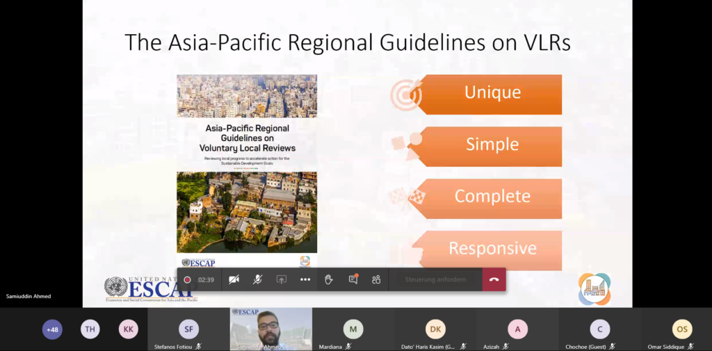 Closing remarks were provided by Norliza Hashim, Chief Executive, Urbanice Malaysia. Future sessions will also bring together speakers from various UN entities, research organizations, representatives from Asian and Pacific cities who have committed to conducting a VLR in the coming months, and other global and regional stakeholders.