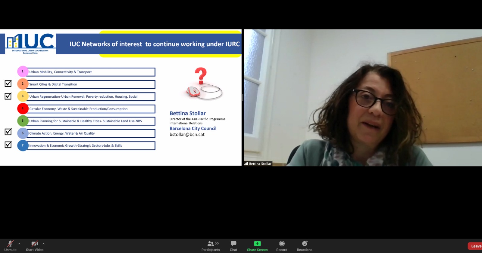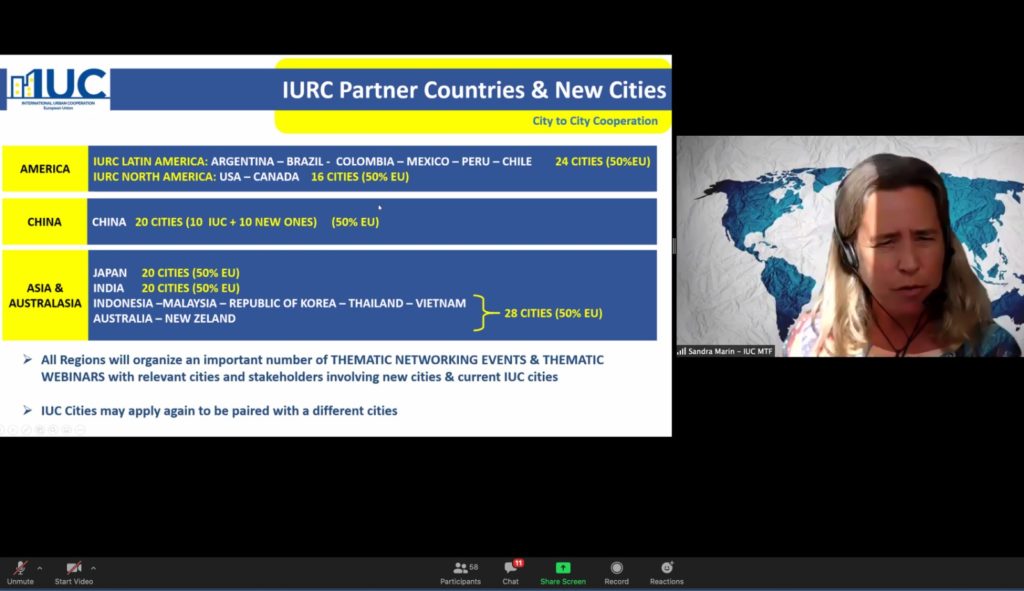 Sandra Marín from the IUC Methodolofgy Taskforce introduced the thematic networking approach proposed for the upcoming IURC programme. She said that it is proposed for all IURC regions to organise thematic networking events & webinars with relevant cities and stakeholders involving new cities & current IUC cities. According to the EU, the next period will capitalise on existing regional experiences to create a global impact.