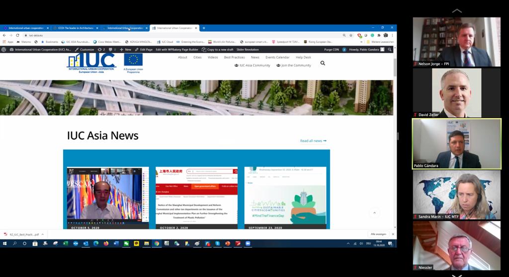 The IUC team co-organised the webinar “International cooperation for innovation in urban development policy and practice: results and perspectives from EU – Asia Cooperation“. The event – which involved over 60 experts from Europe and Asia – was held within the European Week of Regions and Cities, the EU Commission’s flagship annual event on urban and regional development.