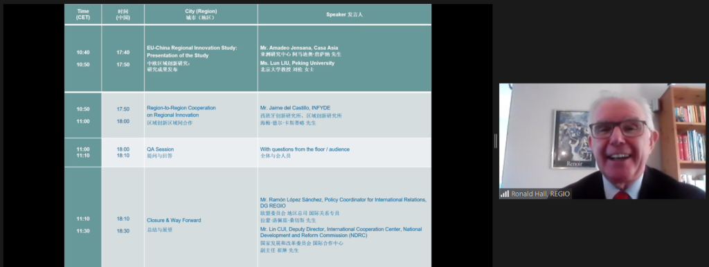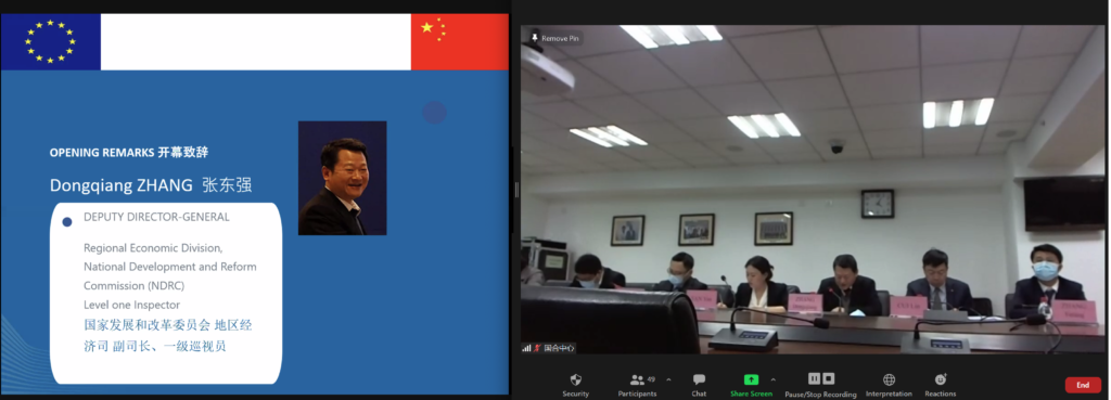 Ronald Hall, Active Senior Advisor for DG REGIO, opened by stating, “This seminar stands in the tradition of our annual events held between NDRC and DG REGIO without interruption since 2006. The EU-China Regional Policy Dialogue is in fact the oldest of DG REGIO’s international policy dialogues and today, for the first time in 15 years, we meet online. As usual, we would like to showcase the best practices, learn from each other and discuss the future cooperation.”