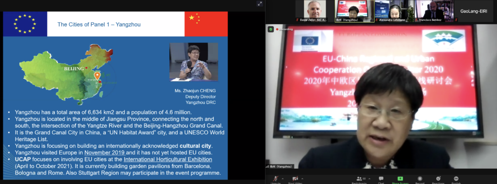 Yangzhou DRC participated in the online seminar on China-Europe regional and urban cooperation (external link here: https://mp.weixin.qq.com/s/nViLvdyF4WdqDcw667kYFw)