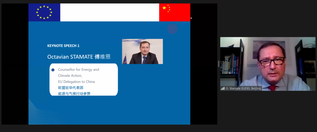 As a precursor to the panel discussion, a keynote on the EU Green Deal was given by Octavian Stamate, Counsellor for Energy and Climate Action at the EU Delegation to China, who noted the good work done by IUC Asia. He recalled a meeting with European and Chinese IUC pilot cities two years ago at the EU Delegation. “In Europe, even before the outbreak, the European Commission had put forward an ambitious program called the European Green Deal, designed to make our economy more sustainable and to turn environmental and climate challenges into opportunities, while ensuring that transition to the new model of development is just and fair for all European citizens” – he said. Mr. Stamate explained that in the EU, climate action will be mainstreamed in policies and programmes, with a target of 30% of total EU 2021-2027 expenditure dedicated to climate actions and projects. “Given the weight of the EU China Strategic Partnership on Urban and Regional Cooperation – results achieved locally will surely have impact on a global scale” – he said.