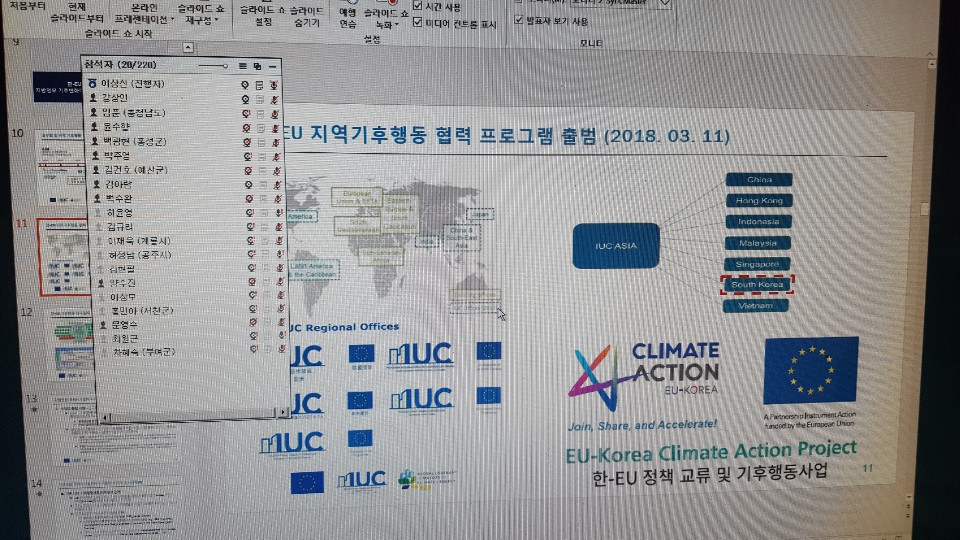 About 25 local climate action officers from municipalities and counties in ChungNam province participated in an online training session on mitigation and adaptation to climate change organised by the IUC project in Korea. Three presentations followed by Q&A and discussion were given on the topics of: