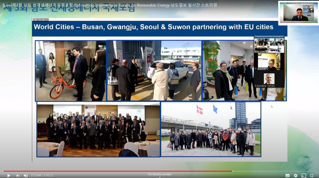 Today, the Directorate-General for Energy of the European Commission (ENER) and the IUC Asia team participated in the 3rd International Forum on Renewable Energy, on the topic of Green Energy and New-Deal Industry of Gwangju and Jeonnam (Gwangju Metropolitan City and Jeonnam Province, Republic of Korea). The hosts of the hybrid online and offline conference were Gwangju Metropolitan City, Jeonnam Province / International Climate & Environment Center (ICEC), Gwangju Jeonnam Institute and Namdo Daily, which covered the event. Since 2017, the IUC project has implemented several training activities on climate action with Gwangju city.