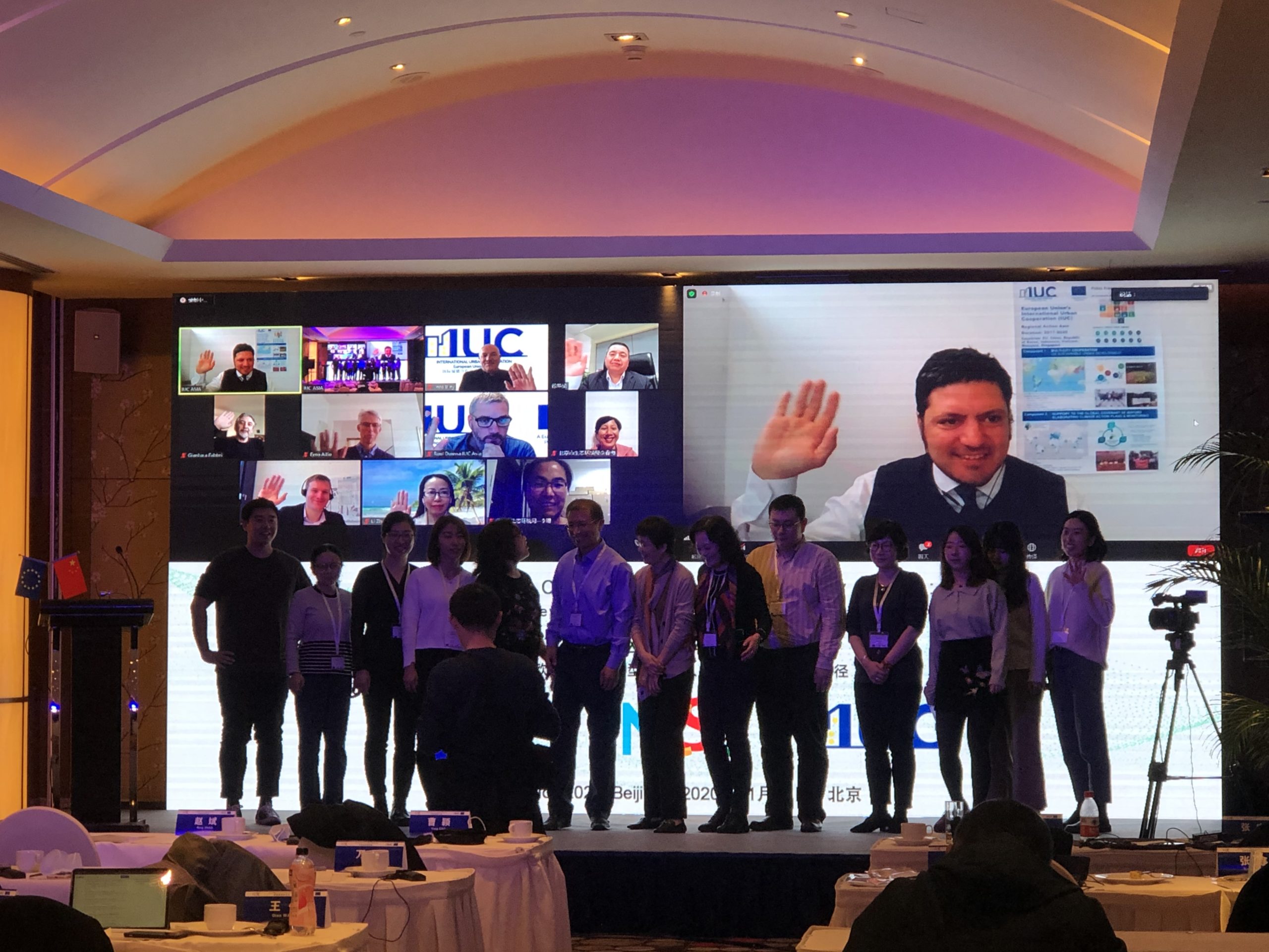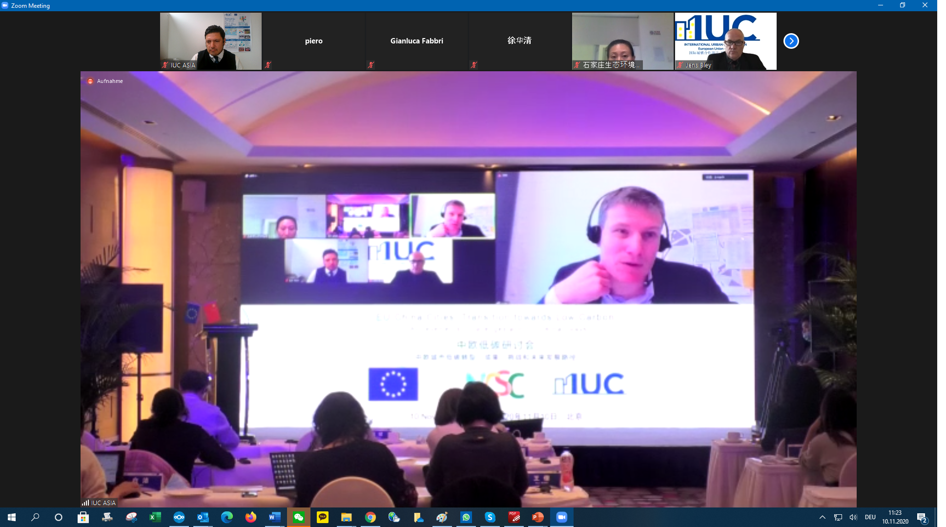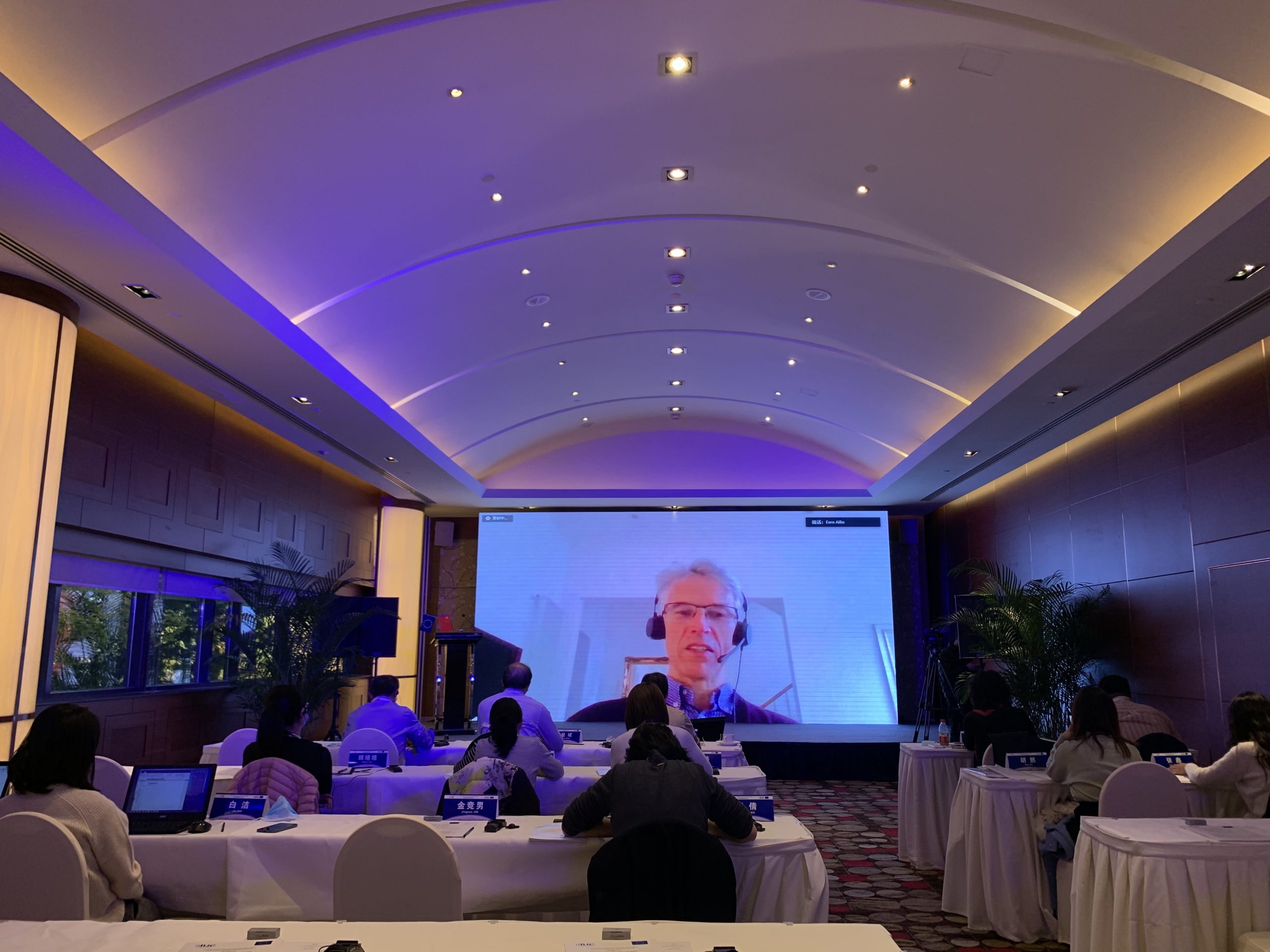 The IUC Asia project held today a three-hour workshop on the transition from EU and Chinese cities towards low carbon development. The meeting involved nearly 40 participants – partly onsite in Beijing and partly online (via video conferencing). The event was a follow-up activity to the online exchange session on the EU-China Low Carbon Cities Study that took place between European and Chinese experts on 27th May 2020 (see online coverage here). The workshop reviewed the policy implications of the European Union’s Green Deal for European cities with regard to their transition towards low carbon. It also took stock of China’s results on lowering CO2 emissions within the 13th Five Year Plan (2016-2020) and draw possible implications for the upcoming 14th Five Year Plan (2021-2025) currently under elaboration. Experts from the cities of Hamburg, Milan, Ningbo and Wuhan shared their experiences in decreasing CO2 emissions and made make recommendations for the EU-China cooperation on local climate action. Onsite in Beijing were also represented the Chinese cities of Beijing, Chengdu and Tianjin. The event was organized by the IUC-Asia project in cooperation with the National Centre for Climate Change Strategy and International Cooperation (NCSC). Keynotes were held by Octavian Stamate – Councellor for Energy and Climate Action at the EU Delegation to China -, Mr. Xinming LU – Deputy Director-General for the Department of Climate Change at the Ministry of Ecology and Environment (MEE) -, Mr Eero Ailio – Principal Advisor for Energy Transition and Local Governance at the Directorate Energy for Energy of the European Commission (DG ENER) -, and Ms. Ying CAO – Research Director at the Department of Policy and Regulatory of China’s NCSC – and Mr. Huaqing XU – also Director at NCSC.