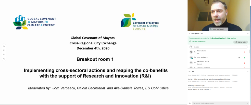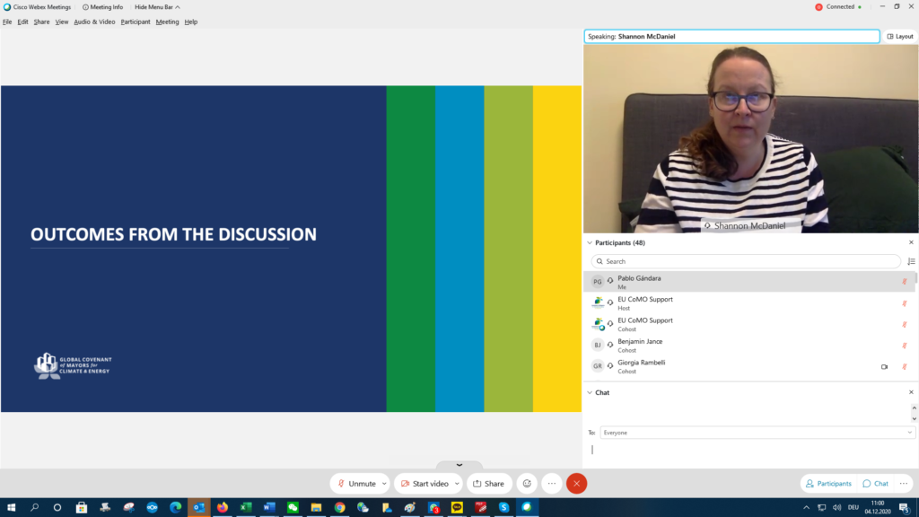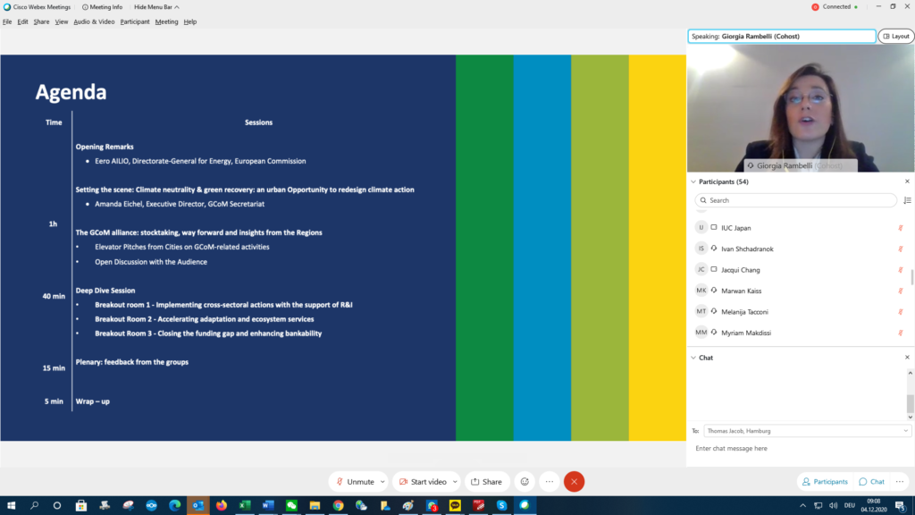 Today the EU Covenant of Mayors (CoM) Office, in collaboration with the Global Covenant of Mayors for Energy and Climate (GCoM) Secretariat, held a meeting with the aim of fostering dialogue and exchange of good practices among GCoM signatories across the world. The event took place online, split into two online sessions with different timings, to accommodate participation worldwide between selected city representatives from Europe, South, East and East Asia, Latin and North America, Africa and Oceania, as well as GCoM Helpdesks, Secretariats and stakeholders form all National and Regional Covenants worldwide. The event was moderate by Giorgia Rambelli from the CoM Office and the GCoM Secretariat.