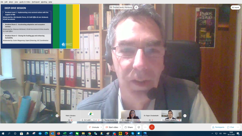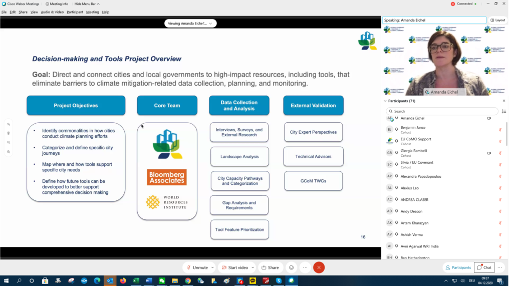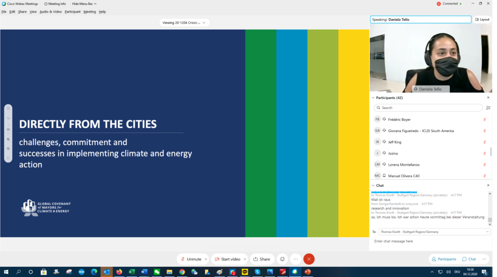 Amanda Eichel, Exec. Dir. of the GCoM Secretariat, set the scene with the topic of Climate neutrality & green recovery: an urban Opportunity to redesign climate action. The GCoM alliance took stock on the way forward and insights from the regions, allowing cities to share what they are already doing or planning to do, linked to the GCoM’s mission and scope of work. Ms. Eichel also introduced the next steps of the GCoM work-plan as well as the data and validation steps required to support cities climate action plans.