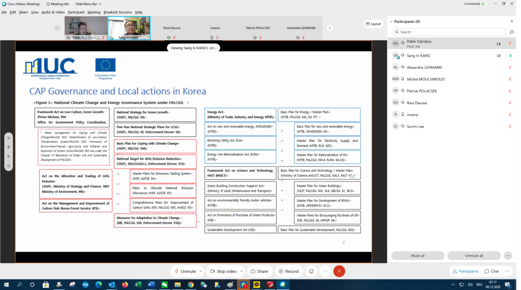 The report as well as the cities’ review papers include several recommendations for climate action in Korea, including training support to local officials to overcome limited information on local CO2 emissions’ breakdown from the national inventory, the need to cooperate with signatory cities of the Local Climate Emergency and Energy Transition Declaration as well as with Korean partners such as KECO, KACCC, ICEC, SHARI and KRIC. Experts discussed about the implementation of the Korean Green New Deal by local governments as well as the “Climate Act”, which is expected to be adopted by the Korean government in 2021. European Climate Law could be an interesting reference to the Korean national and local governments in this field.
