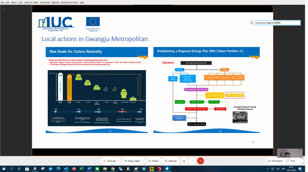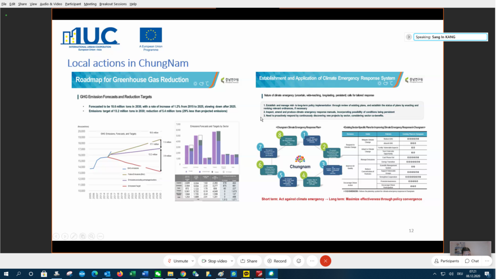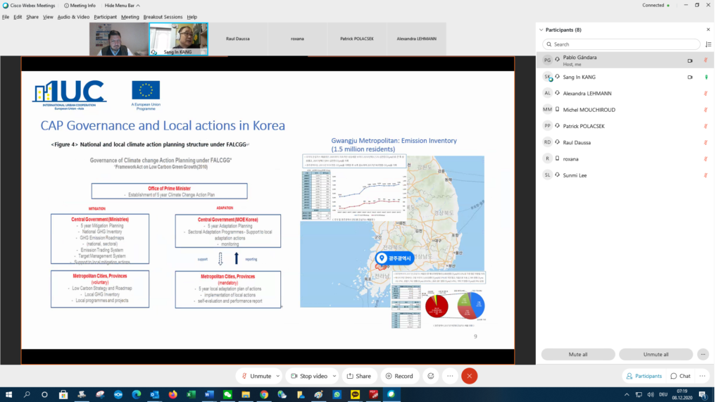 The report as well as the cities’ review papers include several recommendations for climate action in Korea, including training support to local officials to overcome limited information on local CO2 emissions’ breakdown from the national inventory, the need to cooperate with signatory cities of the Local Climate Emergency and Energy Transition Declaration as well as with Korean partners such as KECO, KACCC, ICEC, SHARI and KRIC. Experts discussed about the implementation of the Korean Green New Deal by local governments as well as the “Climate Act”, which is expected to be adopted by the Korean government in 2021. European Climate Law could be an interesting reference to the Korean national and local governments in this field.